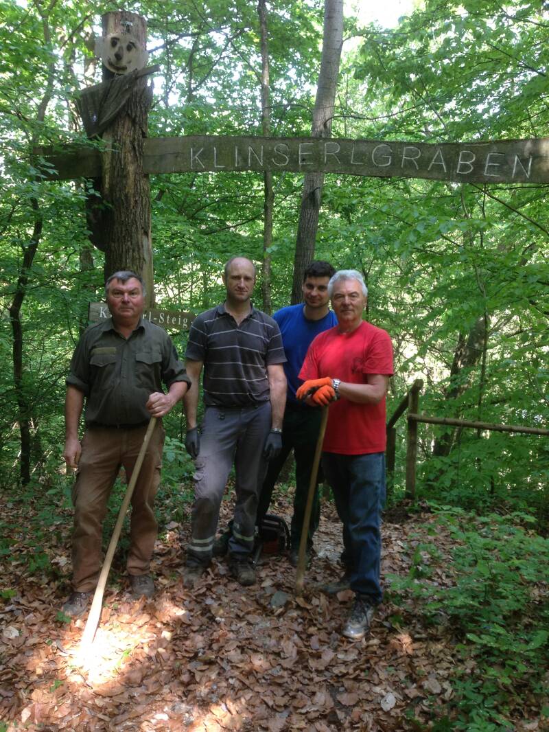 Anlässlich unseres Wandertages fanden heuer wieder Ausbesserungsarbeiten am Klinzerlgrabenwanderweg statt, dabei wurden die Stufen erneuert und begehbar gemacht.