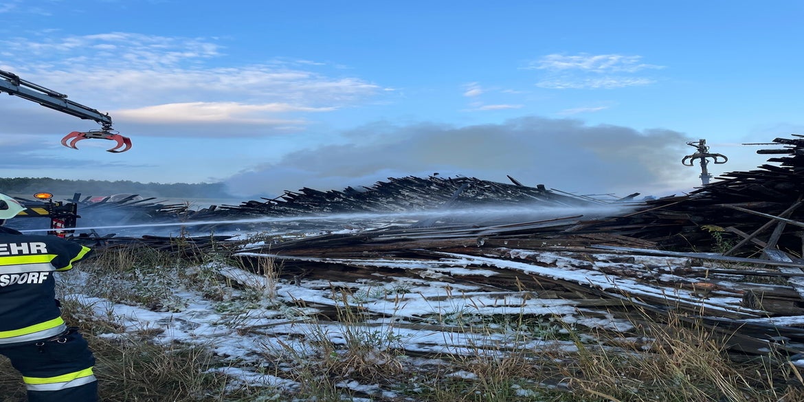 Beim Eintreffen an der Einsatzstelle stand ein Teil eines Holzstapels bereits in Vollbrand. Aufgrund der hohen Brandlast und der mangelnden Wasserversorgung wurden im Laufe des Einsatzes die Feuerwehren Fürstenfeld, Bierbaum, Großwilfersdorf und Ilz nachalarmiert. Durch die Einrichtung eines Pendelverkehrs mit den vorhandenen wasserführenden Fahrzeugen konnte das notwendige Löschwasser bereit gestellt werden. Zusätzlich wurde das LUF eingesetzt und mittels Kran das verbrannte Holz verteilt um eine bessere Löschwirkung zu erzielen. Nach 3,5 Stunden konnte Brand aus gegeben werden.
